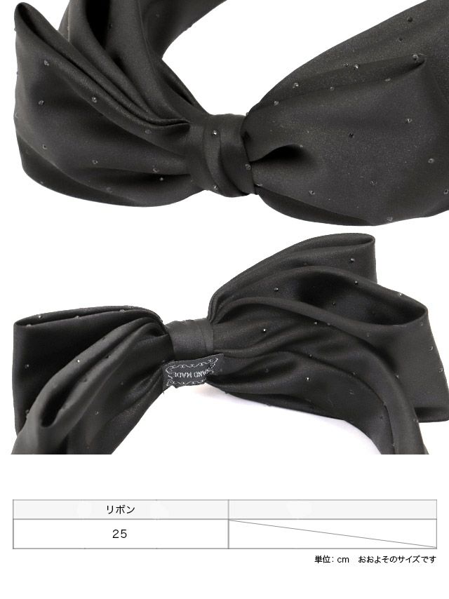ブラックビジュー付きサテンリボンカチューシャヘアアクセサリー