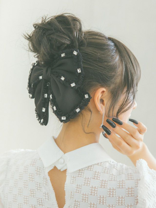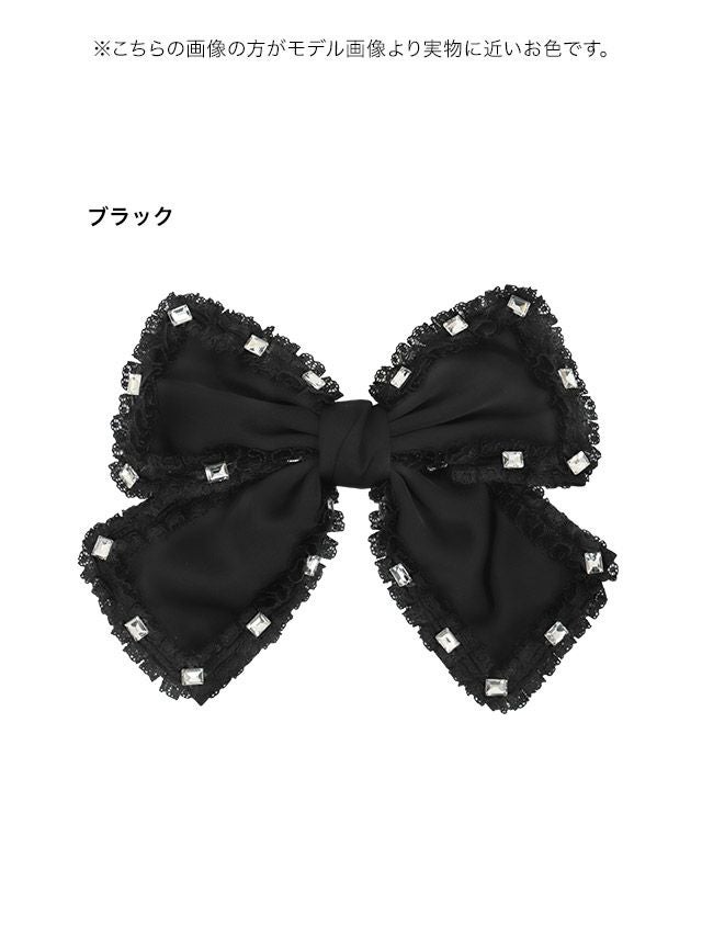5. [アウトレット] ストーンビジュー付きフリルパイピングリボンバレッタバースデーヘアバースデーアクセサリー