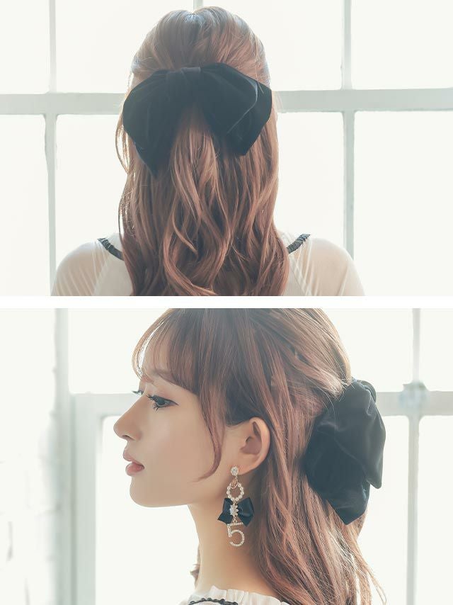 5. ブラックベロアビックリボンバレッタヘアアクセサリー