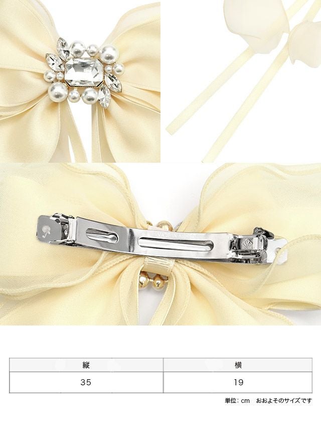 シアーチュール×サテンリボンパールビジューバレッタヘアアクセサリー【ネコポス対応可350円】