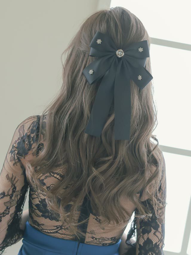 ビジューパール付きビッグリボンバレッタヘアアクセサリー