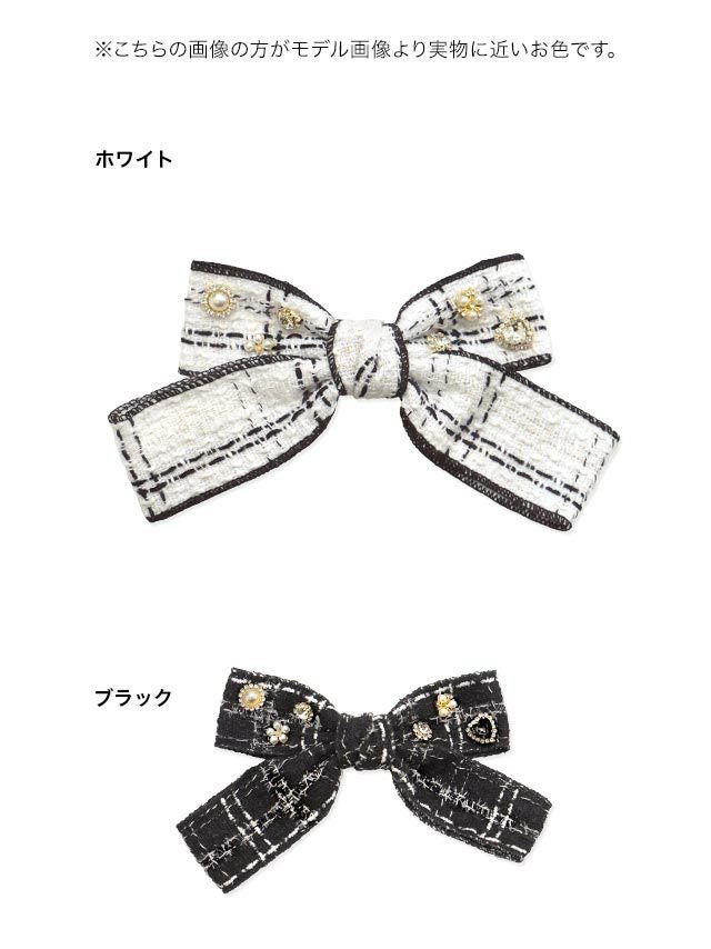 ヘアーアクセサリー ヘアアクセ 髪飾り 髪留め まとめ髪 大きめ myMinette マイミネット ツイードリボンレトロビジュー付きバレッタヘアアクセサリー