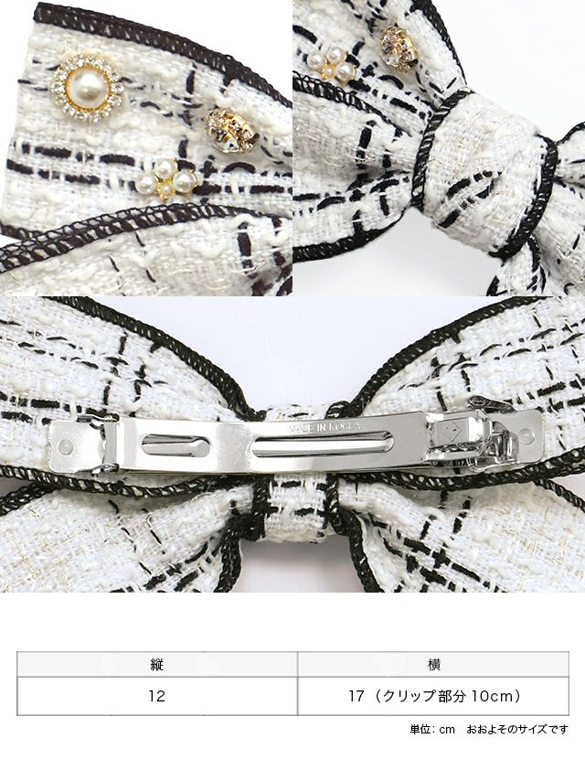 ツイードリボンレトロビジュー付きバレッタヘアアクセサリー