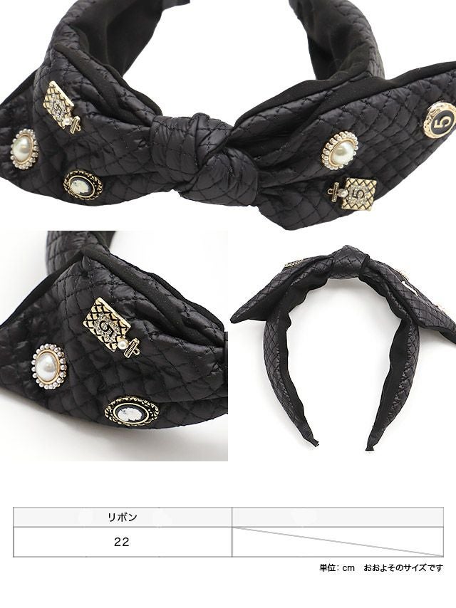ビンテージチャーム付きレザー風キルティングリボンカチューシャヘアアクセサリー