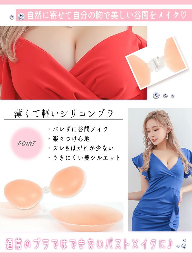 キャバ嬢さんがよく着るタイトなドレスやボディラインを強調する服にぴったりのアイテムが、シリコンブラというわけです。
