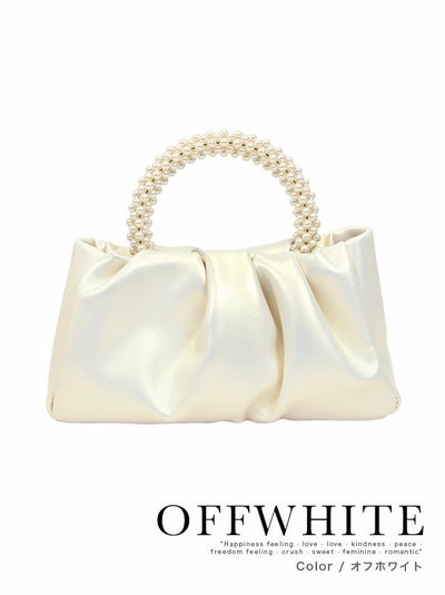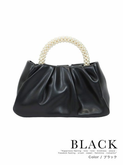 ギャザーフェイクレザーパールハンドルパーティーバッグ
