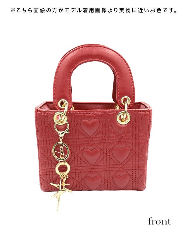 ハートキルティングゴールドチェーンレザーバッグ商品詳細フロント