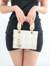 ハートキルティングゴールドチェーンレザーバッグモデルサイド2