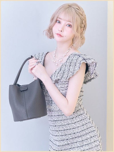 スカーフ付きレザー調バケツ型2wayハンドミニバッグ