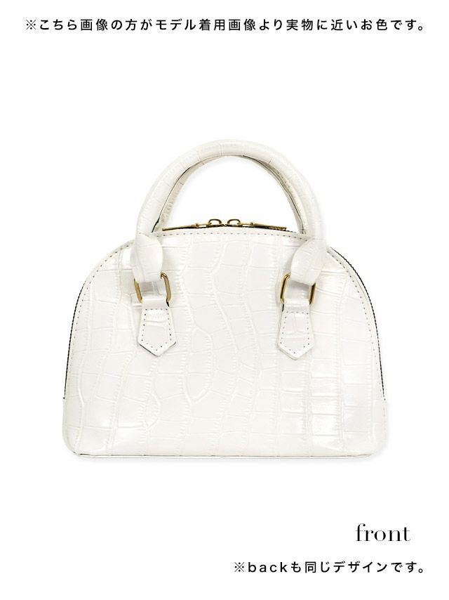 クロコ風ラウンド2wayボストンハンドミニバッグのフロント