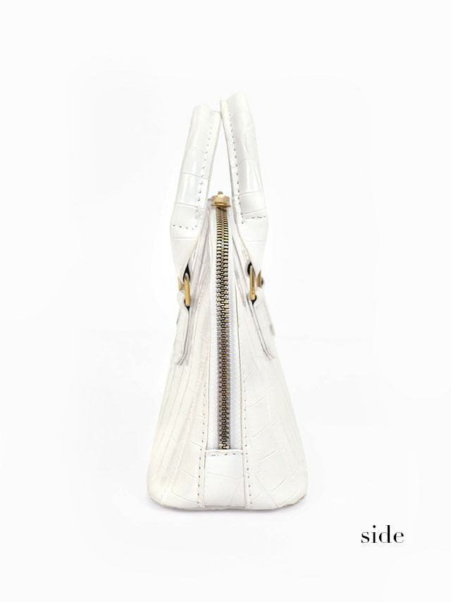 クロコ風ラウンド2wayボストンハンドミニバッグのディティール