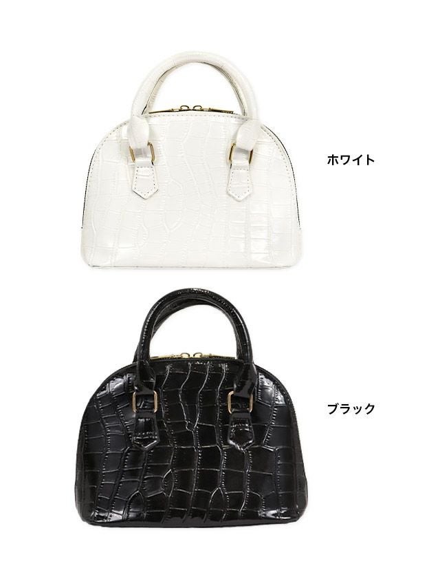 クロコ風ラウンド2wayボストンハンドミニバッグ