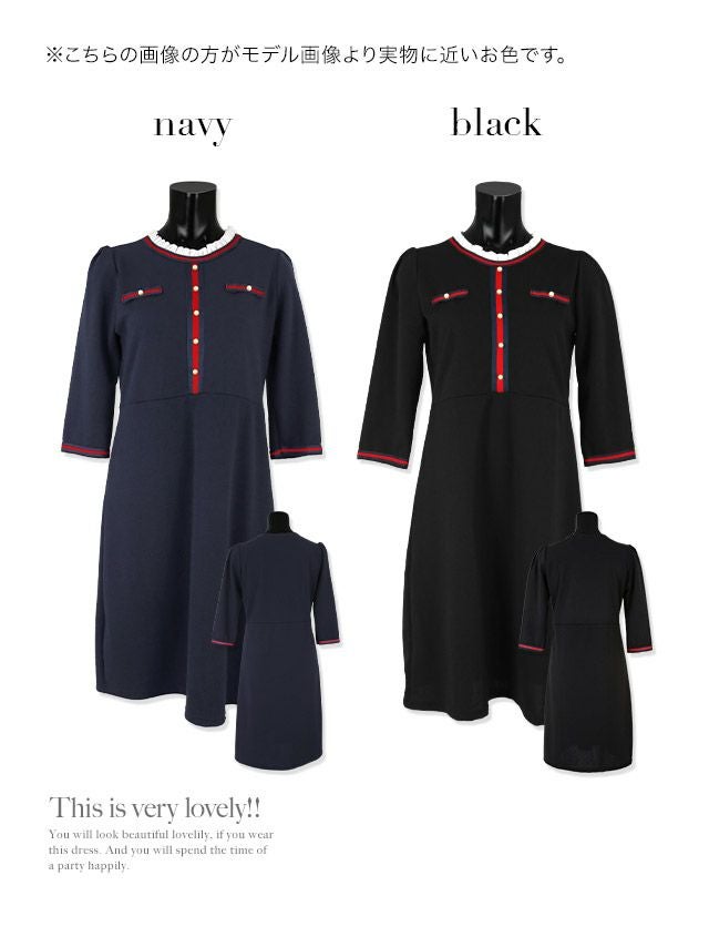韓国ドレス フリルネック袖あり膝丈ドレス (Mサイズ) (愛沢えみり/キャバドレス着用)