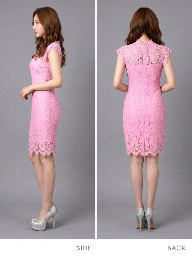 キャバドレス 安い 激安 ミニ丈 キャバクラ クラブ ラウンジ 総レース イリュージョンネック 膝丈 ミニドレス プチプラドレス