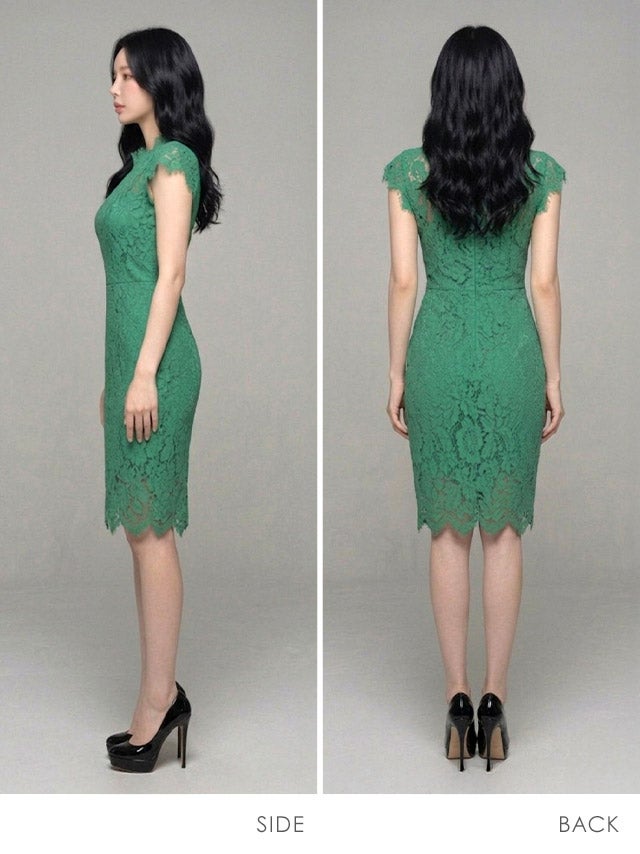 総レースイリュージョンネック膝丈ミニドレス