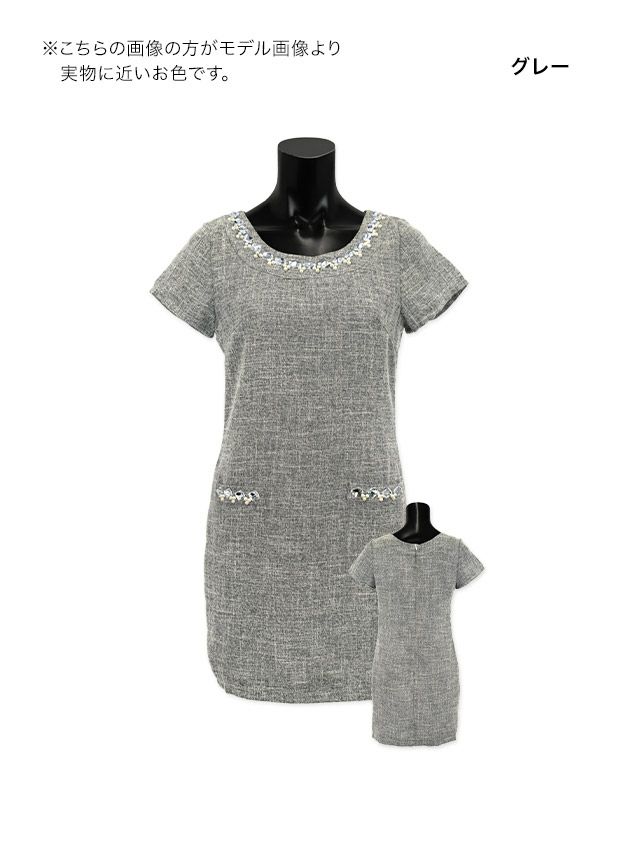 サマーツイード半袖ネックビジュータイトミニドレスのカラー