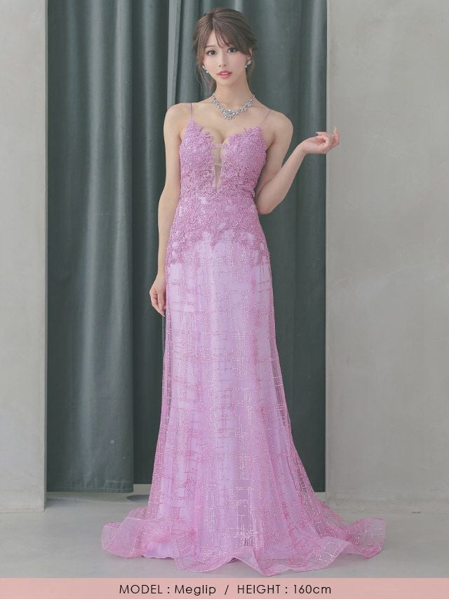 女性らしいシルエットで魅せるフレアロングドレス