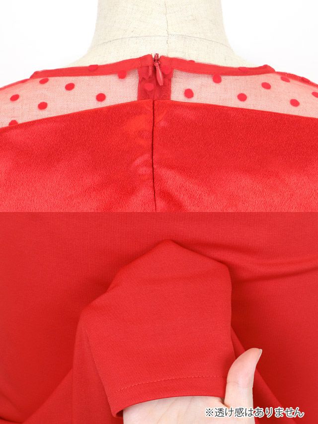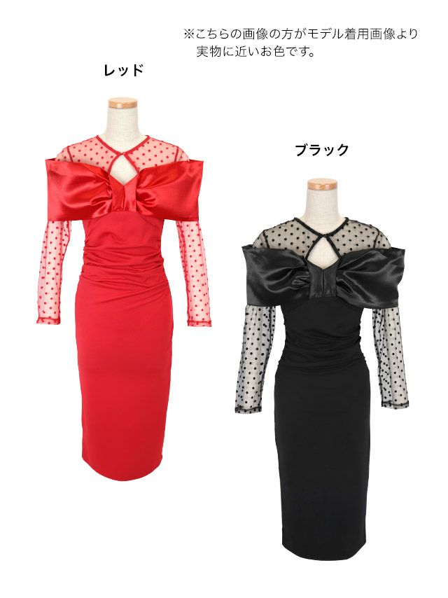 ワンカラーシアードット柄長袖バストビッグリボンタイト膝丈ドレスの商品画像3枚目