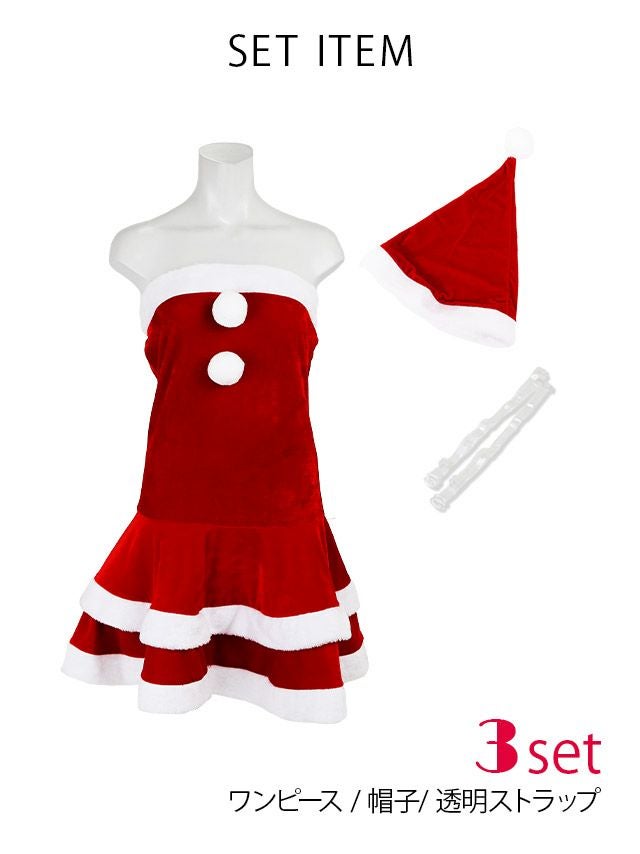 サンタコス 3点set リボンストラップ オフショル プチプラ サンタ コスプレのセット内容
