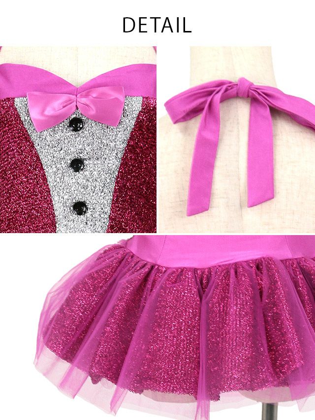 コスプレ リボン ラメ ホルターネック ふわふわチュール キラキラ スカ―ト オフショル プチプラ ガーリー バニーガールのディティール1
