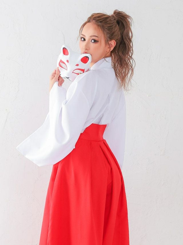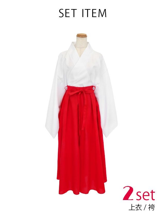3. [セール]コスプレ 和装 巫女 ウエストリボン 長袖 体型カバー ロングスカート 2点セット (上衣/袴)