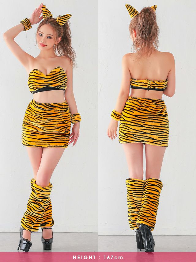 コスプレ 鬼 チューブトップ タイト ミニスカート アニマル 5点セット