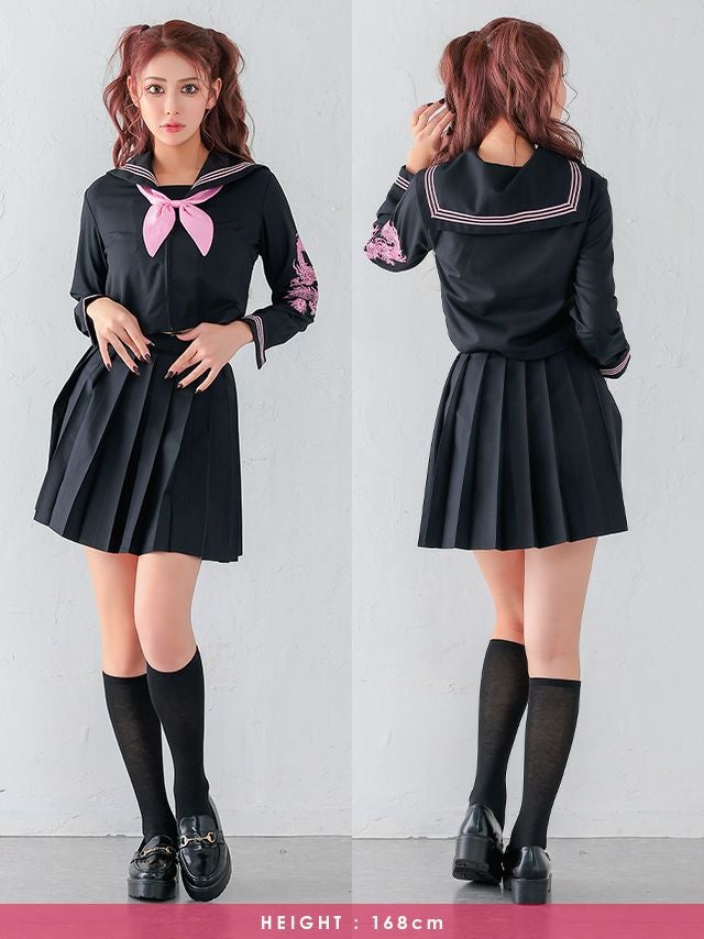 コスプレ ドラゴン刺繍 セーラー制服 ミニ スカート ペア 長袖のフロント