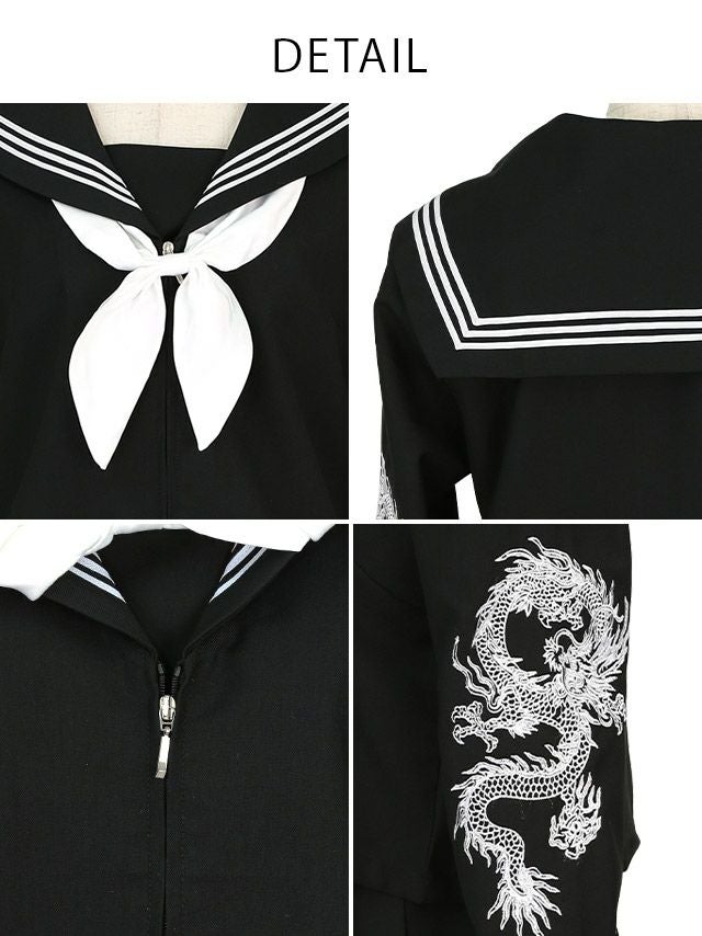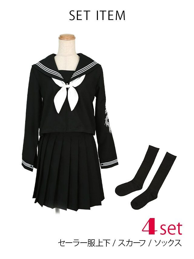 クールな刺繍入りデザイン☆ [セール][再入荷]コスプレ 長袖 セーラー制服 ドラゴン ペア スカート ミニ [4点セット] (セーラー服上下/スカーフ/ソックス)(S~XXL)