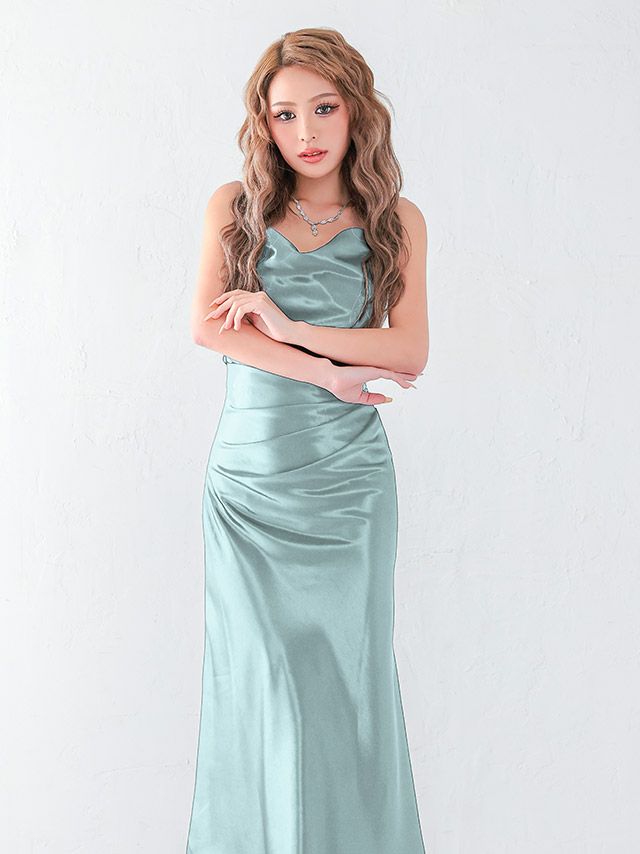 5. [新作]クロスオープンバック サテン カウルネック プチプラ ロングドレス(S~XLサイズ) (みのり/キャバドレス着用) [myMinette/マイミネット]