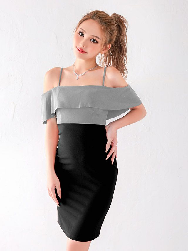 バイカラー配色のタイトドレス♪