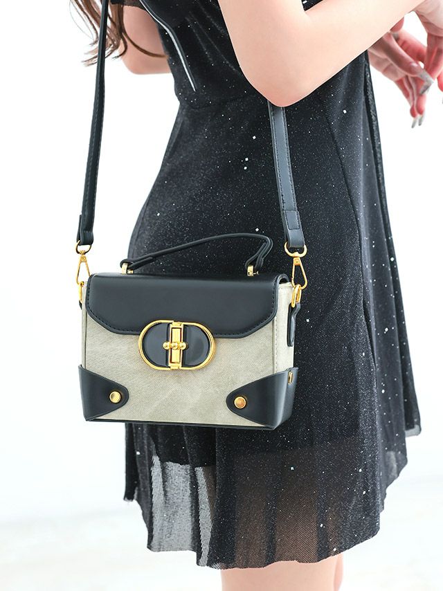 2wayレザー調バイカラーハンドミニバッグ