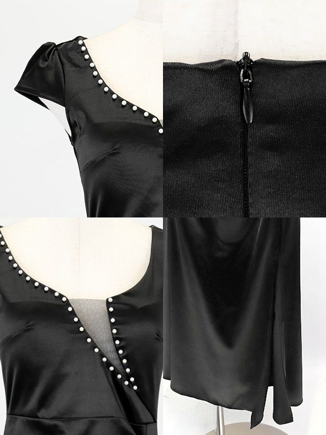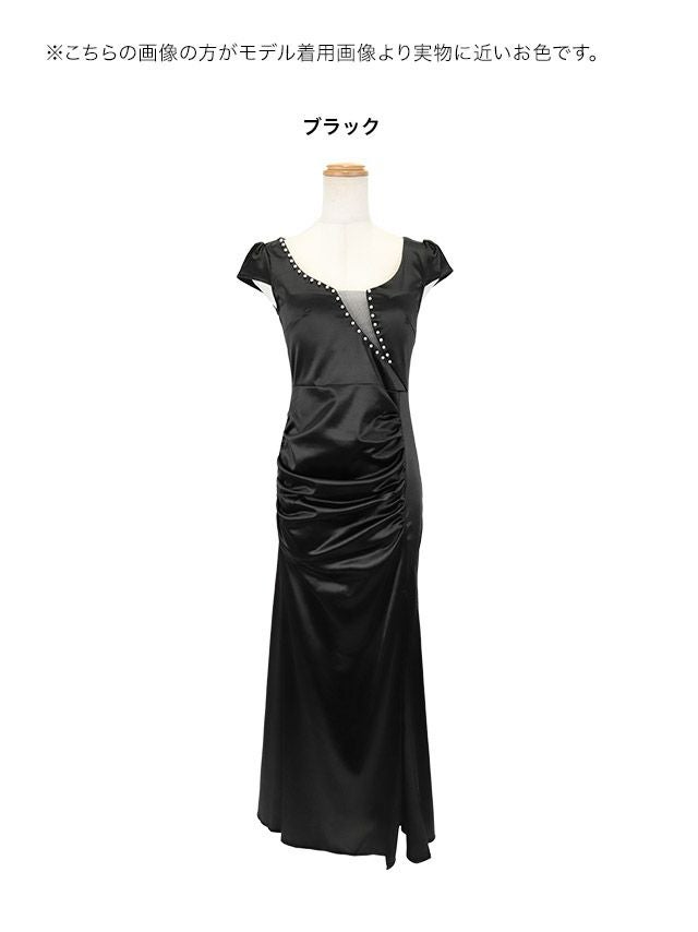 バストカット パール スリット 半袖 サテン タイト ロングドレスの商品画像3枚目
