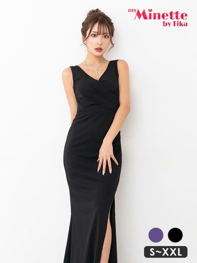 3. [SALE] ロングドレス プチプラ 新人 タイト スリット セクシー ラウンジ ノースリーブ 谷間 スナック ワンカラー シンプル 紫 キャバドレス