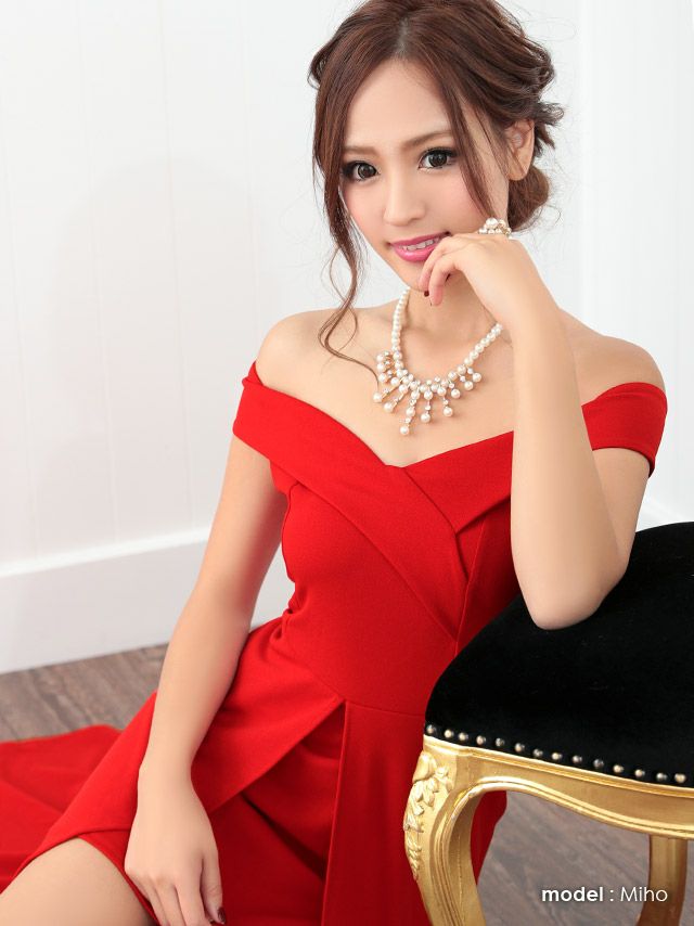 5. [SALE]オフショルダーワンカラーアシメ丈プチプラロングテールドレス (Mサイズ)(中尾みほ/キャバドレス着用)[myMinette/マイミネット]