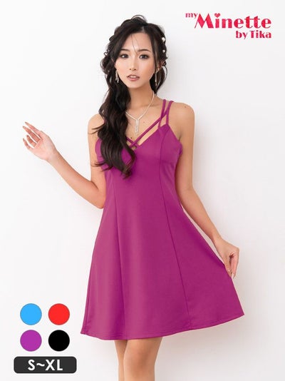 3. [SALE] クロスバストキャミソールワンカラーフレアミニドレス (S~XLサイズ) (れいたぴ/キャバドレス着用) [myMinette/マイミネット]