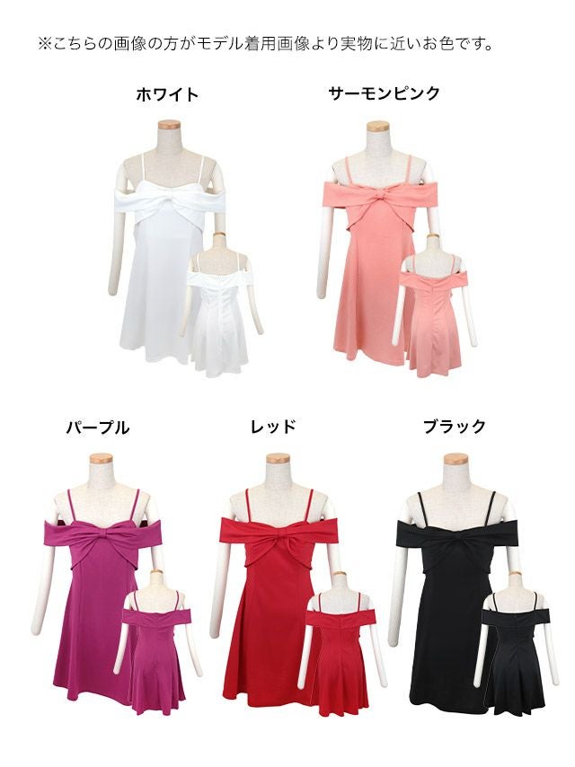 5. ワンカラーバストリボンキャミソール肩あきガーリーフレアミニドレス(Sサイズ~XXXLサイズ)(れいたぴ/キャバドレス着用)[myMinette/マイミネット]