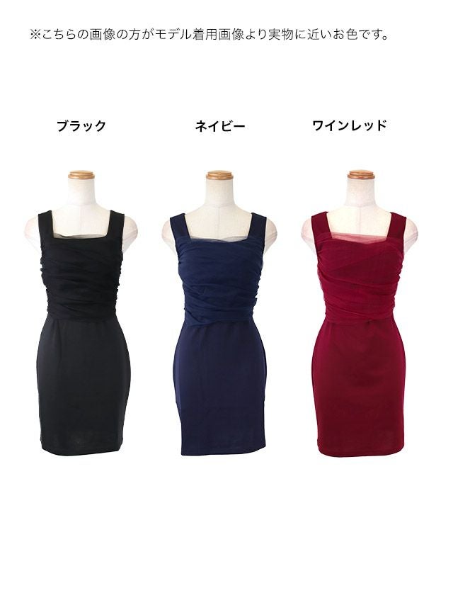 3. ノースリーブ 胸元チュールデザイン シンプル タイト ミニドレス (Sサイズ〜XLサイズ)(ちぴたん/キャバドレス着用)[myMinette/マイミネット]