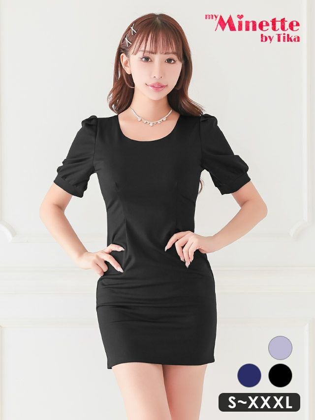 [SALE]半袖 シンプル タイト プチプラ ワンピース ミニドレス (Sサイズ~XXXLサイズ) (あいみん/キャバドレス着用) [myMinette/マイミネット]