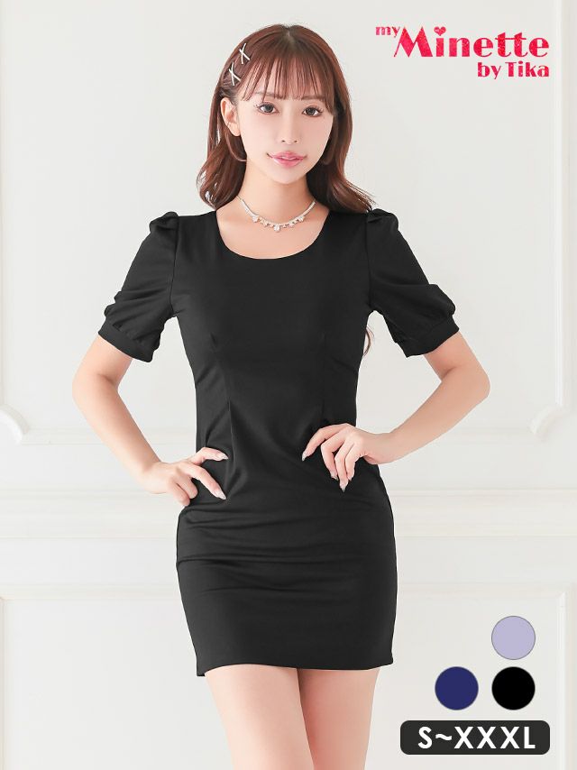 3. [SALE][新作]半袖 シンプル タイト プチプラ ワンピース ミニドレス (Sサイズ~XXXLサイズ) (あいみん/キャバドレス着用) [myMinette/マイミネット]