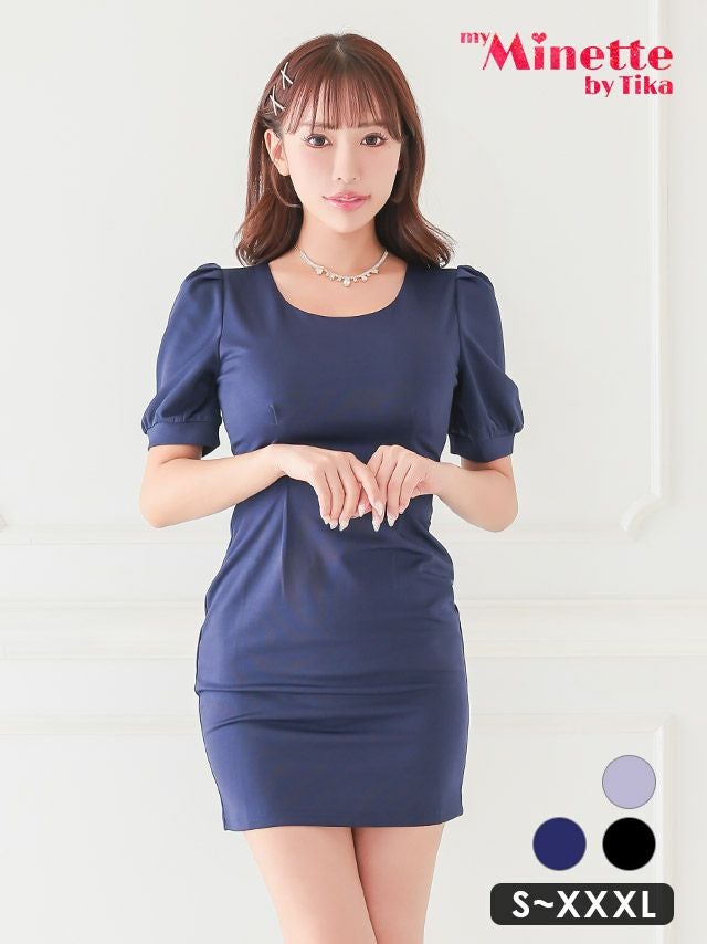 [SALE]シンプル 半袖 プチプラ タイト ワンピース ミニドレス (Sサイズ~XXXLサイズ) (あいみん/キャバドレス着用) [myMinette/マイミネット]
