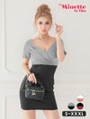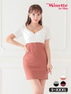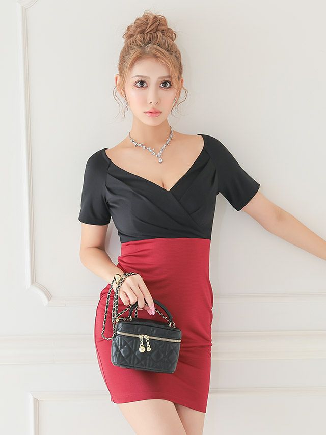 [SALE] ミニドレス プチプラ 新人 タイト 半袖 低身長 谷間 ワインレッド 黒 バイカラー シンプル キャバドレス (波北かほ着用/S~XXXLサイズ対応) | myMinette/マイミネット