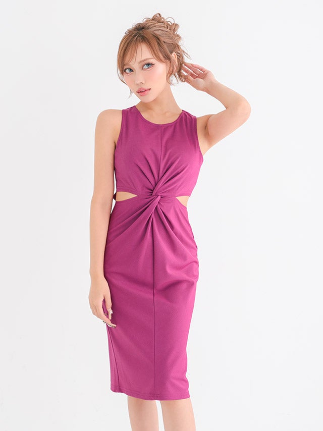[新作] 膝丈ドレス プチプラ 新人 タイト セクシー ラウンジ ノースリーブ 胸元隠し ウエストカット マゼンタピンク キャバドレス (きぃぃりぷ着用/S~XXLサイズ対応) | myMinette/マイミネット