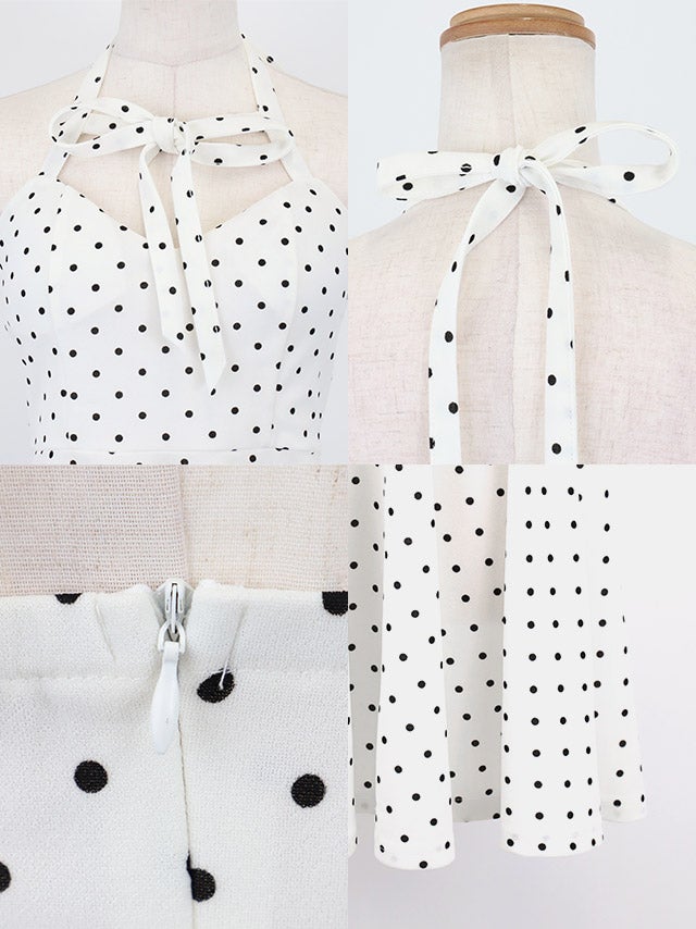 ミニドレス プチプラ 新人 ワンピース フレア ホルターネック ラウンジ ドット柄 低身長 谷間 ガーリー 黒 キャバドレス商品画像2