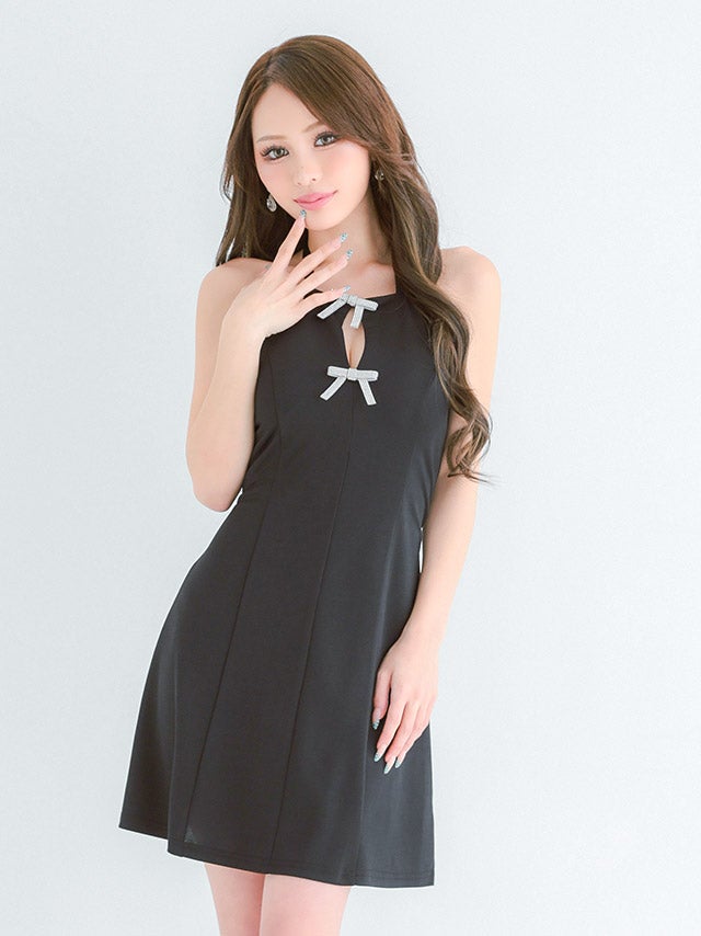 ミニドレス プチプラ 新人 フレア ホルターネック セクシー ラウンジ キラキラ 低身長 谷間 リボン ローズピンク キャバドレス