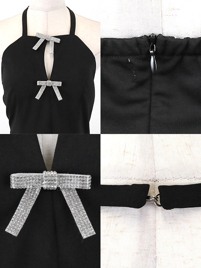 ミニドレス プチプラ 新人 フレア ホルターネック セクシー ラウンジ キラキラ 低身長 谷間 リボン ローズピンク キャバドレス商品画像3