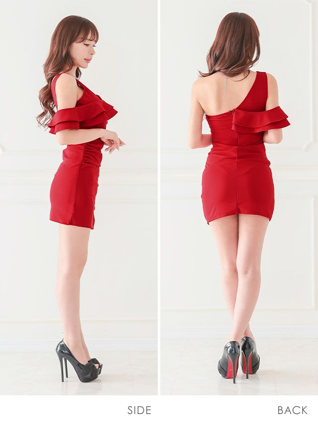 キャバドレス 安い 激安 ミニ丈 キャバクラ クラブ ラウンジ ワンショル フリル 2way セクシー バストカット シースルー タイト ミニドレス プチプラドレス
