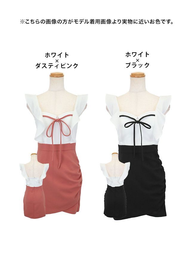 キャバドレス 安い 激安 ミニ丈 キャバクラ クラブ ラウンジ リボン ノースリーブ バイカラー 袖フリル ラップデザイン プチプラ タイト ミニドレス プチプラドレス
