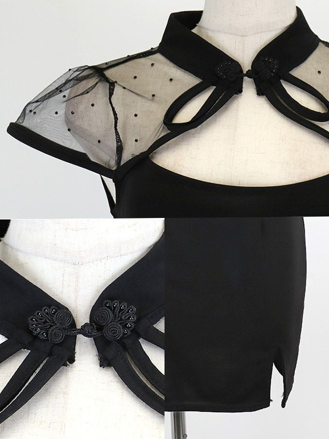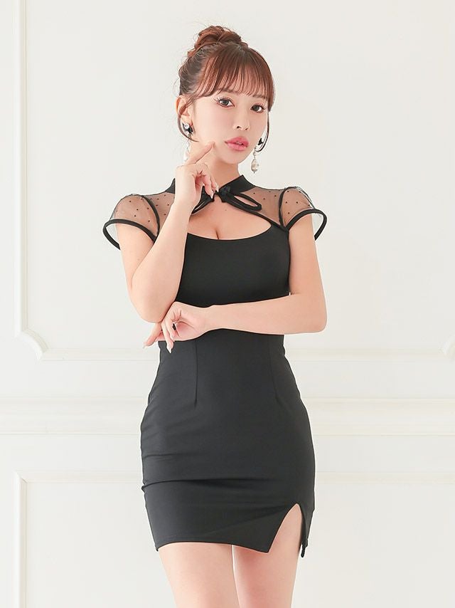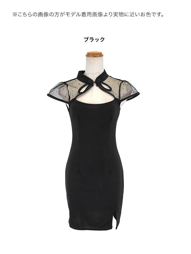 5. [SALE]シースルー ドット柄 チャイナボタン スリット タイト セクシー ミニドレス (Sサイズ~XLサイズ) (あいみん/キャバドレス着用) [myMinette/マイミネット]