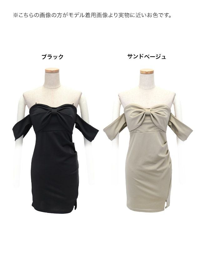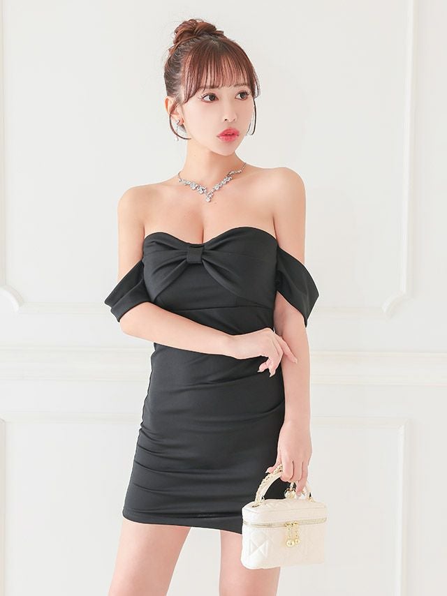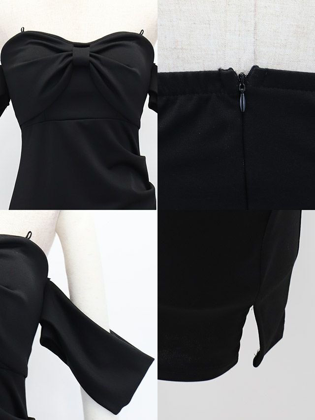 洗練された美しさを引き立てる、ブラックのオフショルドレス!
