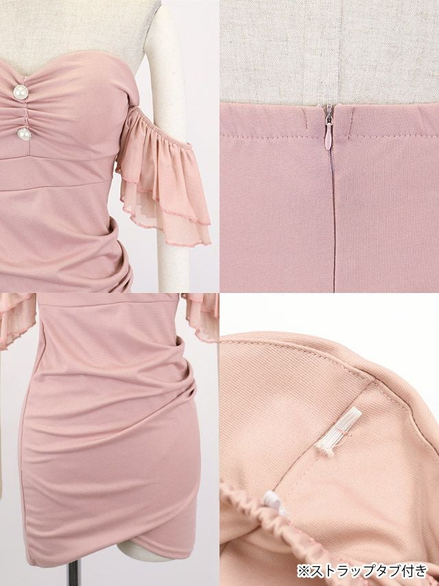 オフショル フリル パールボタン ベアトップ タイト セクシー ミニドレスディティール2